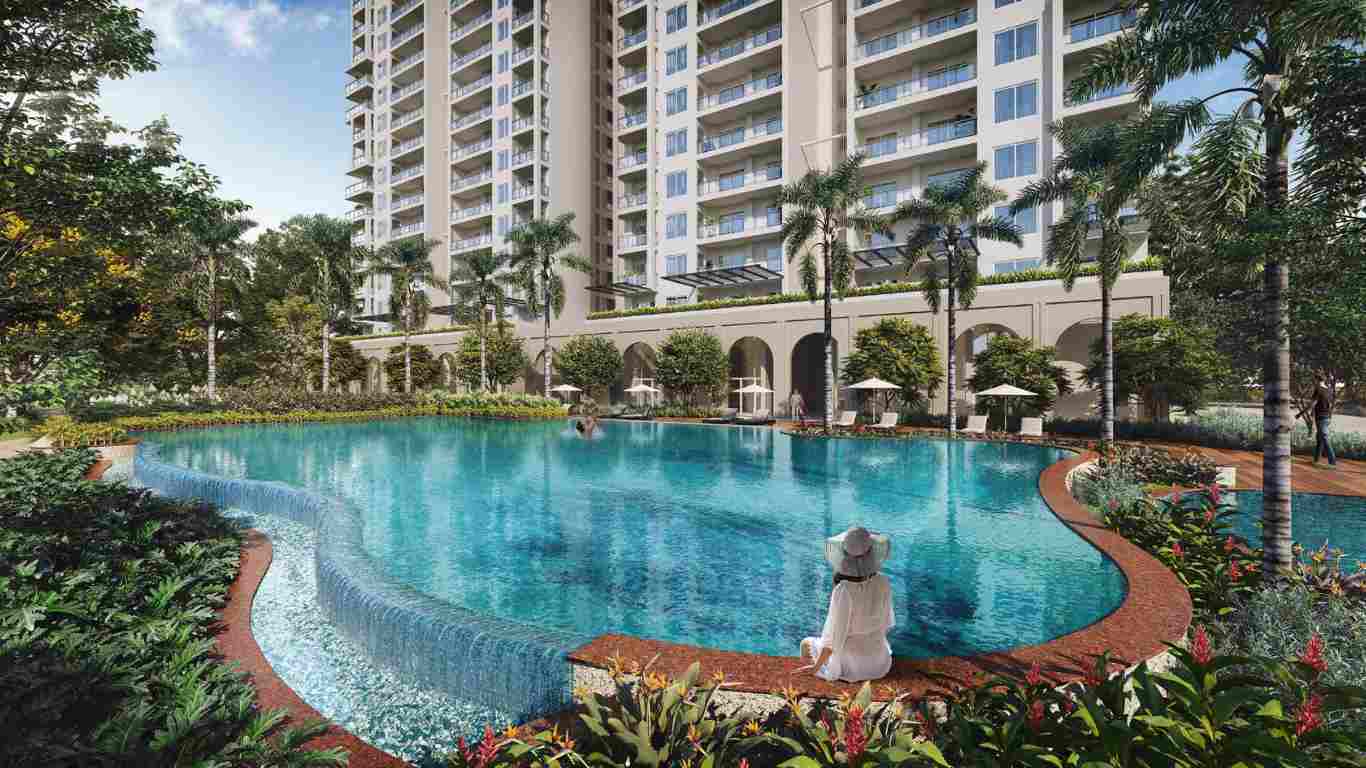 Also, about 80% of the site is open space, creating a nature-inspired living environment that is serene for the residents. The development is designed to support a holistic lifestyle by incorporating world-class amenities into a large clubhouse and outdoor recreation areas. Amenities include a swimming pool with a kids' pool, a well-equipped gym, yoga and meditation lawns, indoor game rooms, a mini-theater, a party hall, landscaped jogging and cycling tracks, and a pet park. With heightened security, 24/7 surveillance, and private core planning-4-to-a-core for 3 BHK and 2-to-a-core for 3.5 BHK-both privacy and safety are assured to any resident. From an architectural point of view, the towers are designed to maximize natural light and ventilation, while the façade reflects contemporary elegance.