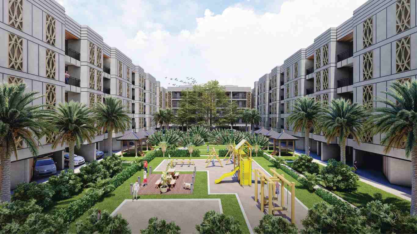 • Lush landscaped gardens, green walkways, and eco-friendly design.