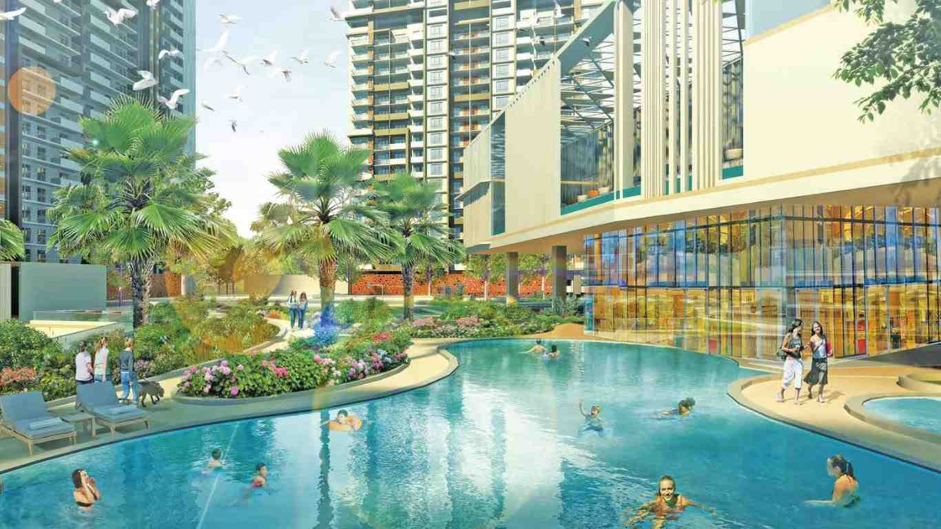 • Spacious residences with modular kitchens, premium fittings, and large balconies offering panoramic city views.